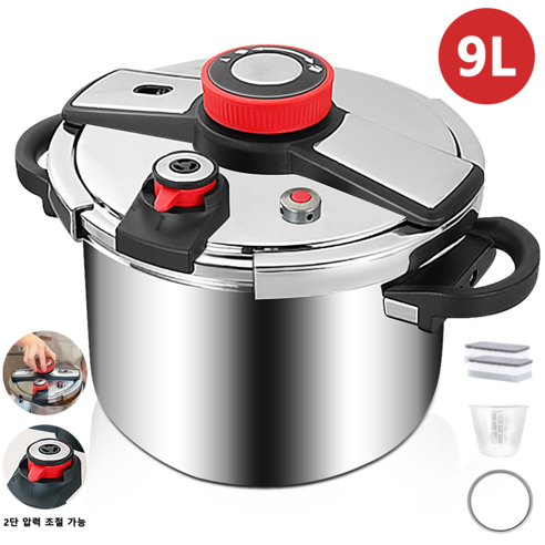 2단 압력 조절이 가능하며 3~10인용까지 사용 가능한 6.5L·9L 대용량 스테인레스 압력솥으로, 인덕션과 가스레인지 모두 호환되어 다양한 요리에 활용할 수 있는 멀티 압력솥입니다.