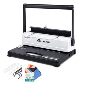 페이퍼프랜드 와이어링 제본기 WS-1600+링 24p+표지20p, 140매는 와이어링 방식으로 문서를 깔끔하게 묶을 수 있는 제본기이며 최대 140매까지 제본 가능하고 링 24개와 표지 20매가 포함돼 바로 작업할 수 있는 구성입니다
