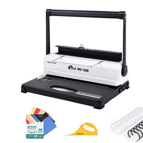 페이퍼프랜드 와이어링 제본기 WS-1600 + 링 24개 + 표지 40매 + 와이어탈착기, 140매는 문서를 한 번에 여러 장 천공하고 와이어를 끼워 단단하게 묶을 수 있는 와이어링 방식 제본기로 링과 표지, 탈착기까지 포함돼 별도 준비물 없이 바로 제본 작업을 할 수 있으며 최대 약 140매 분량 문서를 처리할 수 있는 사무용 제본기입니다