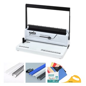 - 와이어링 방식으로 문서를 견고하게 묶을 수 있는 제본기이며 최대 140매까지 제본 가능하고 링 24p와 표지 20p가 기본 포함돼 바로 작업할 수 있는 구성