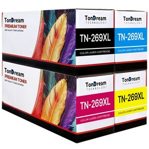 브라더 TN-269XL 대용량 재생토너 4색 세트는 MFC-L3760CDW, HL-L3220CW, DCP-L3520CDW 등 호환 프린터에서 사용 가능하며, 검정, 파랑, 빨강, 노랑 색상으로 고품질 인쇄와 장기 사용에 적합합니다.