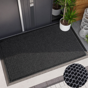미끄럼 방지 기능이 적용된 현관매트로, 먼지와 물기를 흡수하며 출입구를 깔끔하게 유지할 수 있고 블랙 색상으로 다양한 공간에 어울립니다.