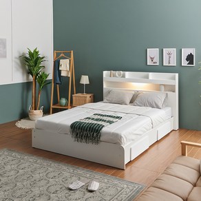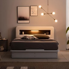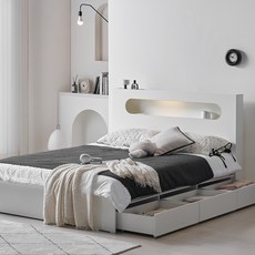 웰퍼니쳐 모화 LED 3단 수납형 침대프레임 단품 방문설치, 화이트