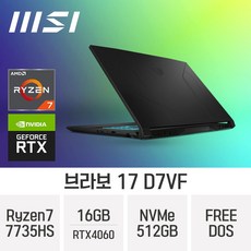 MSI 브라보 17 D7VF, Free DOS, 16GB, 512GB, 라이젠7, 블랙