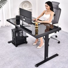 강화유리 상판과 견고한 프레임으로 제작되어 깔끔하고 현대적인 디자인의 컴퓨터책상이며, 게이밍과 학습, 사무용 등 다양한 환경에서 사용 가능하며 1인용과 2인용 옵션으로 공간에 맞춰 선택할 수 있습니다.