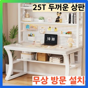 주브켈리 두꺼운 상판 중학생책상 타공판 테이블 컴퓨터 1인용 고등학생 철제 올인원, 화이트, 월넛