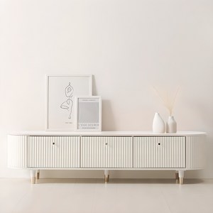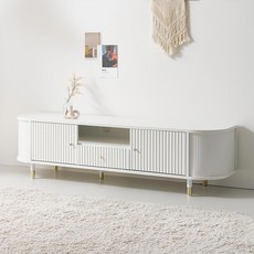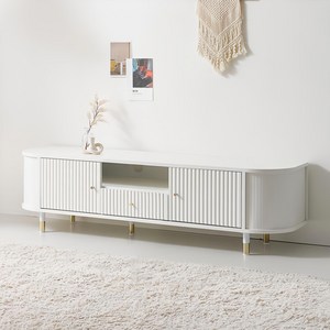 심플한 화이트 컬러와 부드러운 곡선 디자인이 특징인 1800 거실장으로, 튼튼한 템바보드 소재로 제작되어 내구성이 뛰어나며, 넉넉한 수납 공간으로 실용성을 높인 TV다이 제품입니다.