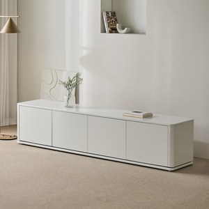 2000mm 넓이의 라운드형 디자인으로 공간 활용이 뛰어나며, 높은 구조로 시청 편의성을 높인 크림화이트 거실용 TV 다이 겸 장식장입니다.