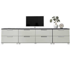 2단 구조와 넓은 수납 공간으로 원룸 및 소형 거실에 적합하며, 그레이화이트 색상으로 깔끔하고 모던한 분위기를 연출하는 TV 다이 겸 거실장입니다.