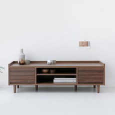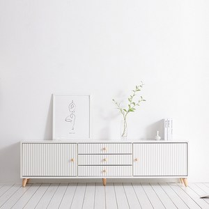 심플한 디자인과 넉넉한 수납 공간을 갖춘 TV거실장으로, 다양한 거실 인테리어와 잘 어울리며 안정적인 구조로 TV를 안전하게 지지할 수 있음.