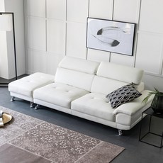 자네트 쟈드 3인용 가죽쇼파 스툴포함, 화이트