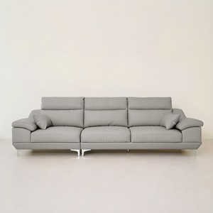 천연 면피 가죽으로 제작되어 고급스럽고 내구성이 뛰어나며, 라이트그레이 컬러로 모던한 분위기를 더해주는 4인용 소파입니다.