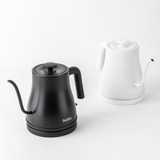 심플한 화이트 디자인과 1L 용량을 갖춘 전기 드립 포트로, 정밀한 물줄기 조절이 가능하며 빠른 물 끓임과 자동 전원 차단 기능으로 안전하게 사용할 수 있는 제품입니다.