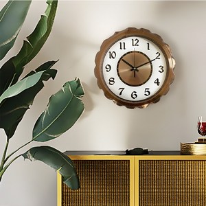 브라운 컬러의 세련된 명품 디자인 벽시계로, 무소음 무브먼트가 적용되어 조용하게 시간을 확인할 수 있으며 거실이나 사무실 등 다양한 공간에 고급스러운 인테리어 효과를 제공한다.