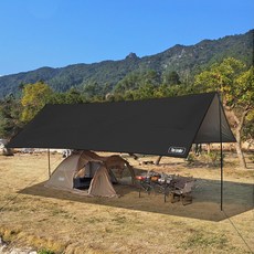 탑 랜더 경량 대형 캠핑 방수 자외선 차단 옥스포드 타프 여러 명이 사용 가능, 천 타프만, 블랙