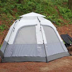 원터치 자동 설치가 가능하며, 2개의 출입구로 편리하게 출입할 수 있고, 넓은 공간과 통풍 기능을 갖춰 가족이나 소규모 그룹 캠핑에서 쾌적하게 사용할 수 있는 텐트입니다.