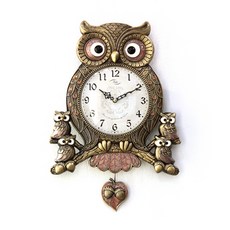 부엉이 디자인으로 인테리어 효과가 뛰어나며, 저소음 무브먼트로 조용한 실내 환경에서도 사용 가능한 벽시계입니다.