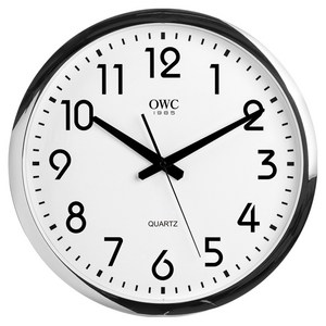 오더블유씨 대형 크롬 오피스 인테리어 벽시계 400 OT625PC, 실버