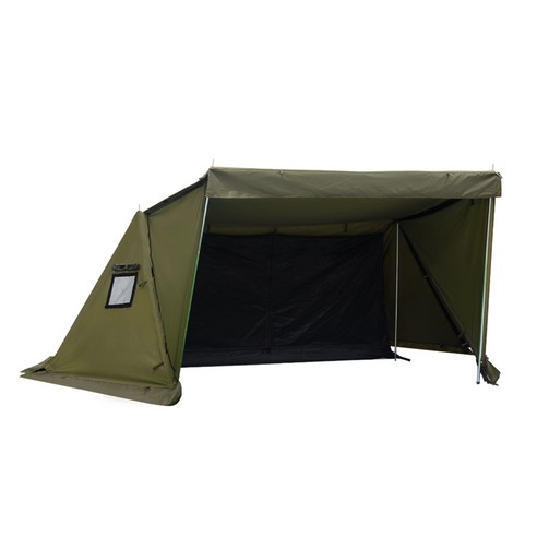 넉넉한 공간과 안정적인 구조를 갖춘 면소재의 티피형 쉘터 텐트로 화로대 사용이 가능해 캠핑 시 쾌적하고 안전한 야외 활동에 적합하다.