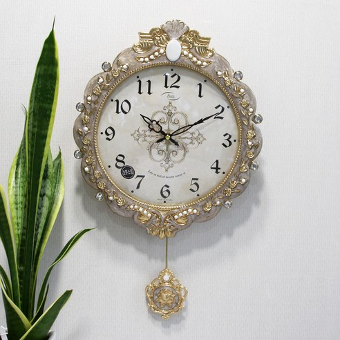 무소음 금은도금 마감으로 세련된 인테리어 효과를 주며, 고급 주물 소재와 로즈데코 디자인으로 품격 있는 벽 장식 역할을 하는 추벽시계입니다.