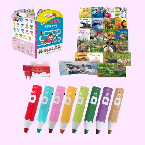 세이펜과 자연동화책, 충전기, 놀이책이 포함된 어린이 학습용 세트로, 듣기와 읽기 활동을 함께 즐기며 언어와 상상력을 키울 수 있는 구성입니다.