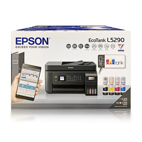 엡손 에코탱크 L5290은 무한잉크 시스템을 적용한 복합기로, 인쇄·복사·스캔·팩스 기능을 지원하며 경제적이고 대용량 출력이 가능하고 무선 연결과 모바일 프린팅 기능을 제공하는 사무용 복합기입니다.