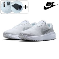 가볍고 유연한 소재로 편안한 착용감을 제공하며, 화이트 컬러의 깔끔한 디자인으로 운동과 일상 모두에 어울리는 나이키 레볼루션 8 런닝화.