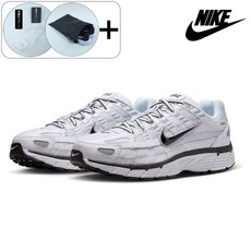 가벼운 착용감과 안정적인 지지력을 제공하는 나이키 P6000 운동화로, 화이트·실버·블랙 컬러 조합이 세련되며 러닝과 캐주얼 스타일 모두에 적합하고 와와코 사은품이 함께 제공됨.
