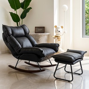 하루꿈 흔들의자+발받침대 1인용 소파 리클라이너 등받이 각도조절 안락 의자, 블랙, 1개