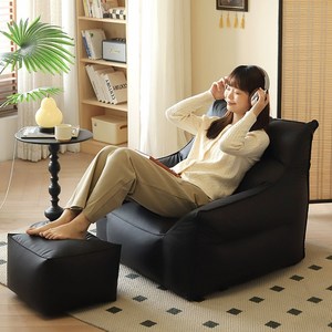 고급 PU 가죽 빈백 소파 + 발받침 세트 / 넉넉한 사이즈 / 물티슈로 간편 관리, 블랙