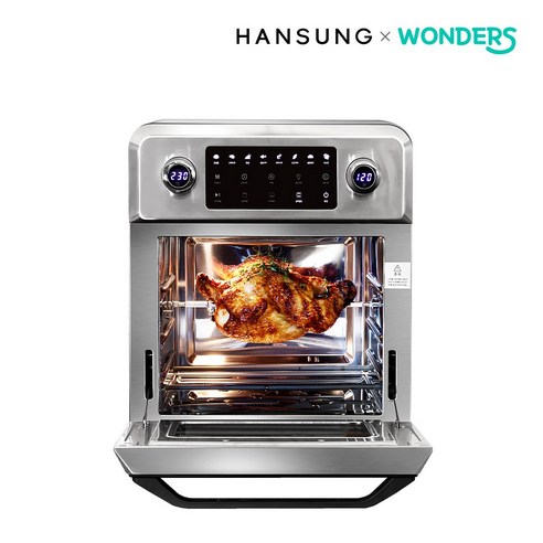 이 제품은 30리터 특대용량으로 가족 단위 요리나 통닭, 피자 등을 한 번에 조리할 수 있으며 모든 내부 구성품이 스테인리스 소재로 위생과 내구성을 고려한 프리미엄형 에어프라이어이다.