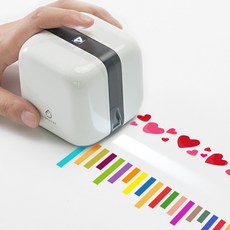 듀얼컬러 인쇄가 가능해 다양한 라벨을 선명하게 만들 수 있으며, 포토인화지와 함께 사용해 사진이나 스티커 제작도 간편하게 할 수 있는 소형 라벨프린터였다.