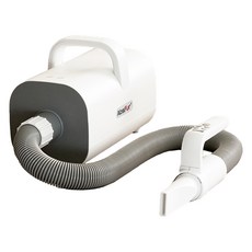 저소음 고출력 설계로 반려동물 털을 빠르고 편안하게 건조할 수 있는 드라이기로, 4단 온도조절과 3종 노즐 세트가 포함되어 다양한 사용이 가능하며 화이트 색상으로 제작되었다.