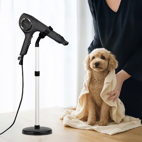 스탠드형으로 손을 자유롭게 사용할 수 있는 펫 드라이기로, 혼합색상 디자인과 안정적인 구조를 갖추어 반려동물 털을 효율적으로 건조할 수 있다.