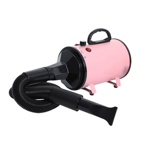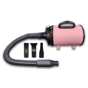 강력한 바람으로 반려동물 털을 빠르게 말릴 수 있는 에어탱크 드라이기로, 핑크 색상과 견고한 구조로 가정용과 업소용 모두 적합하다.