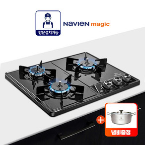 전국설치/가스연결가능 나비엔매직(구SK매직) 3구 빌트인 매립형 쿡탑 가스레인지 GRAB3218D 블랙펄 코팅 560x430 560x440, LNG, 코팅블랙_7003, 배송만