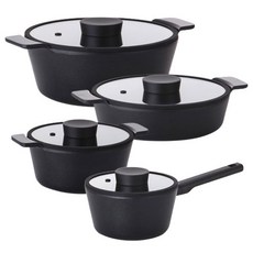 인덕션과 가스레인지 모두 사용 가능한 냄비 4종 세트로, 세라믹 코팅으로 음식이 눌어붙지 않으며 다양한 크기로 요리 용도에 맞게 활용할 수 있는 주방용품입니다.