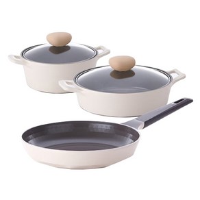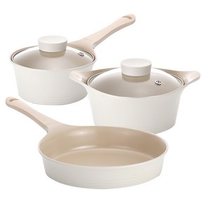 네오플램 인덕션 벨라 3종 세트, 오프화이트샌드, 편수 18cm + 양수 20 cm + 팬 28cm