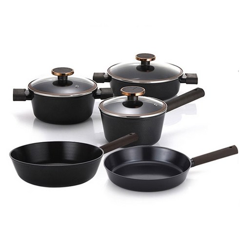 다양한 요리에 활용 가능한 인덕션용 냄비와 프라이팬 5종 세트로, 세라믹 코팅으로 음식이 눌어붙지 않고 손쉬운 세척이 가능하며, 내구성이 뛰어나 오래 사용할 수 있는 주방용품입니다.
